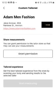 Choose Adam Men's Fashion and push your measurements. Adam Men's Fashion will then retrieve your precise measurements